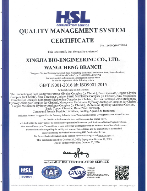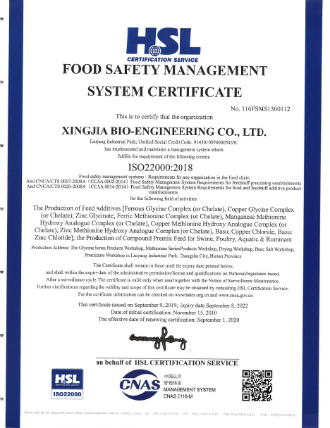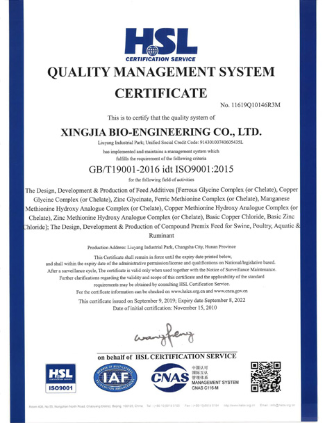 In order to achieve the nutrition efficiency of trace elements on poultry, swine, ruminant and aquaculture, we developed hydroxy methionine chelate to improve production performance.
